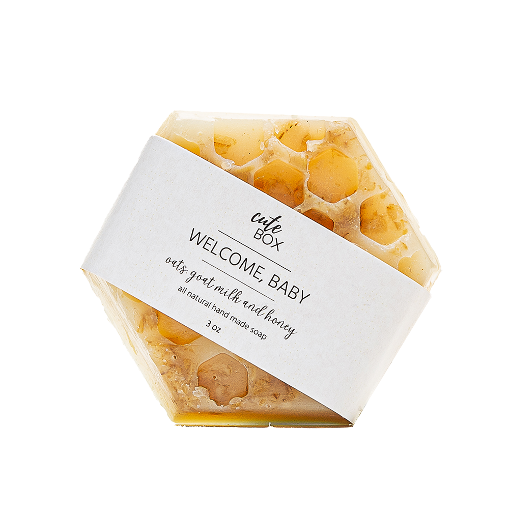 Jabón en barra humectante artesanal de avena, leche de cabra y miel en forma hexagonal 3oz.