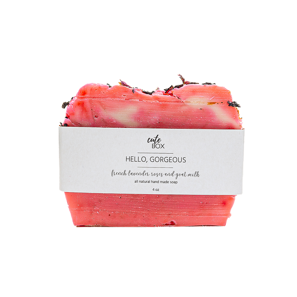 Jabón artesanal humectante de lavanda, rosas y leche de cabra en forma rectangular