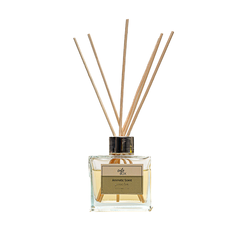Difusor de aroma en envase de vidrio cuadrado 150ml con aroma Té Verde.