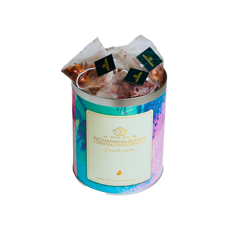Esta presentación cuidadosamente elaborada ofrece una mezcla de té de alta calidad con ingredientes naturales que invitan a la relajación y el bienestar.