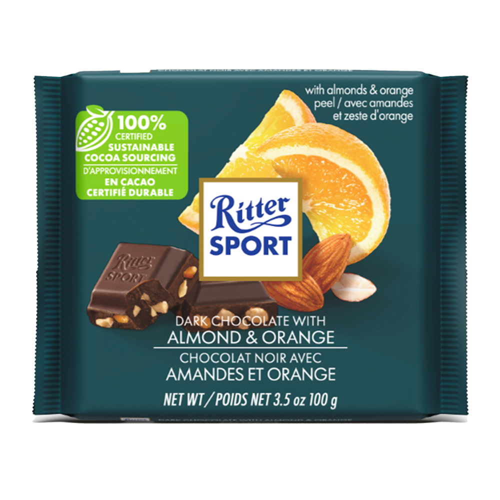 Chocolate oscuro con almendra y naranja Ritter Sport 100g.