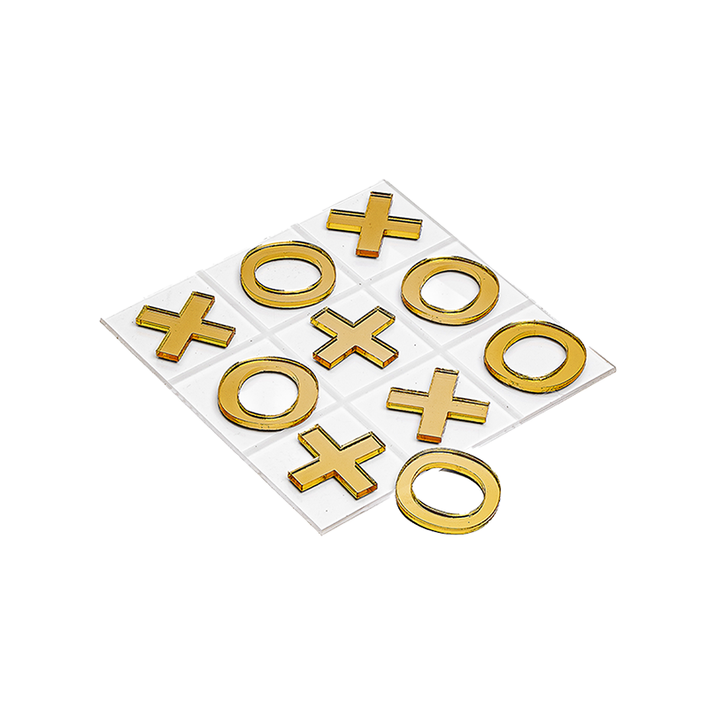 Juego de totito, elaborado en acrilico transparente y dorado 15×15 cm.