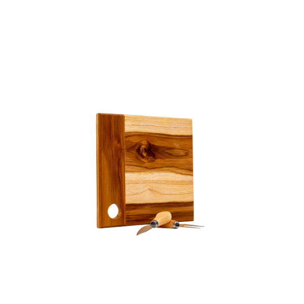 Tabla para quesos de madera teca en tamaño cuadrado 25x25x2 cm.