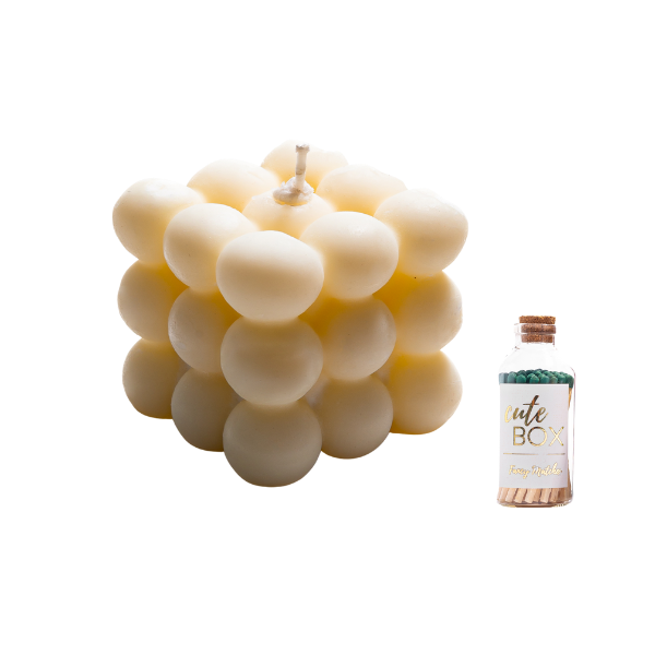 Vela tipo bubble elaborada con cera de soya, ideal para crear ambientes relajantes con un toque decorativo moderno.