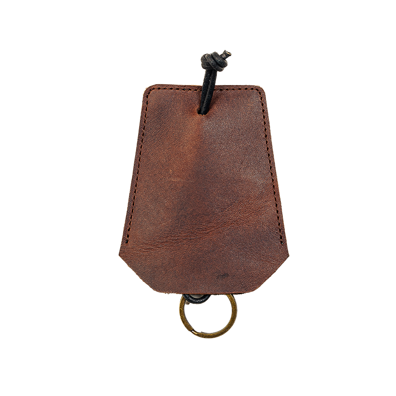 Llavero de cuero con forma de campana 7.5 x 10 cm.