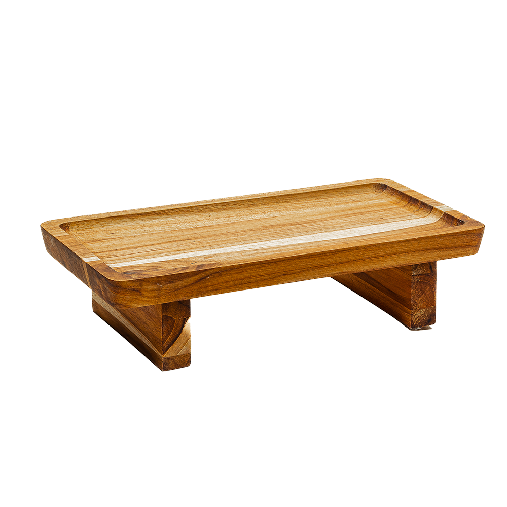 Bandeja alta de madera tipo teca 14.5×26.5×6.5 cm.