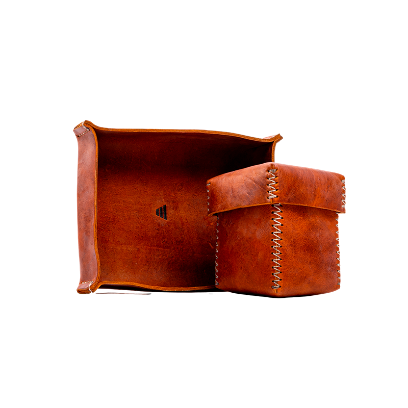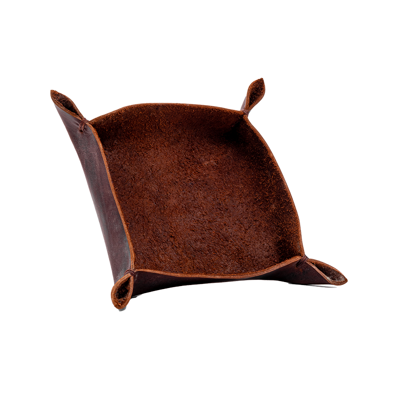 Bandeja de cuero mediana con costura a mano 22 x 17 x 4 cm.