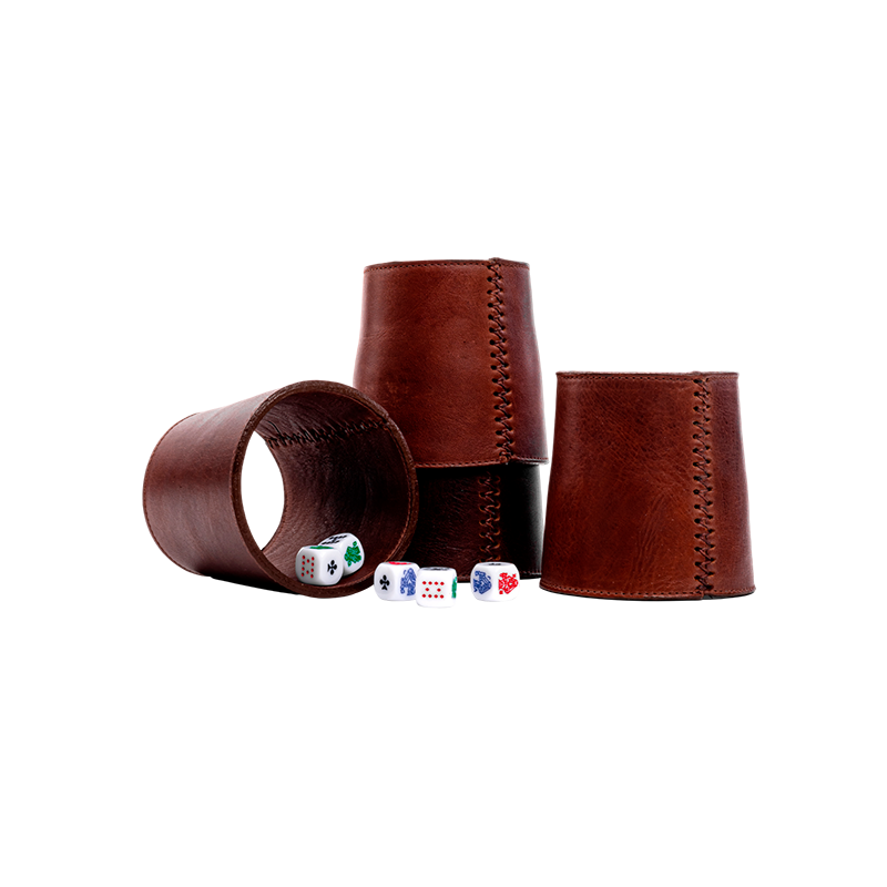 Set de 6 vasos rígidos de cuero natural para jugar juego de mesa Dudo (incluye dados y bolsa de manta para guardar).