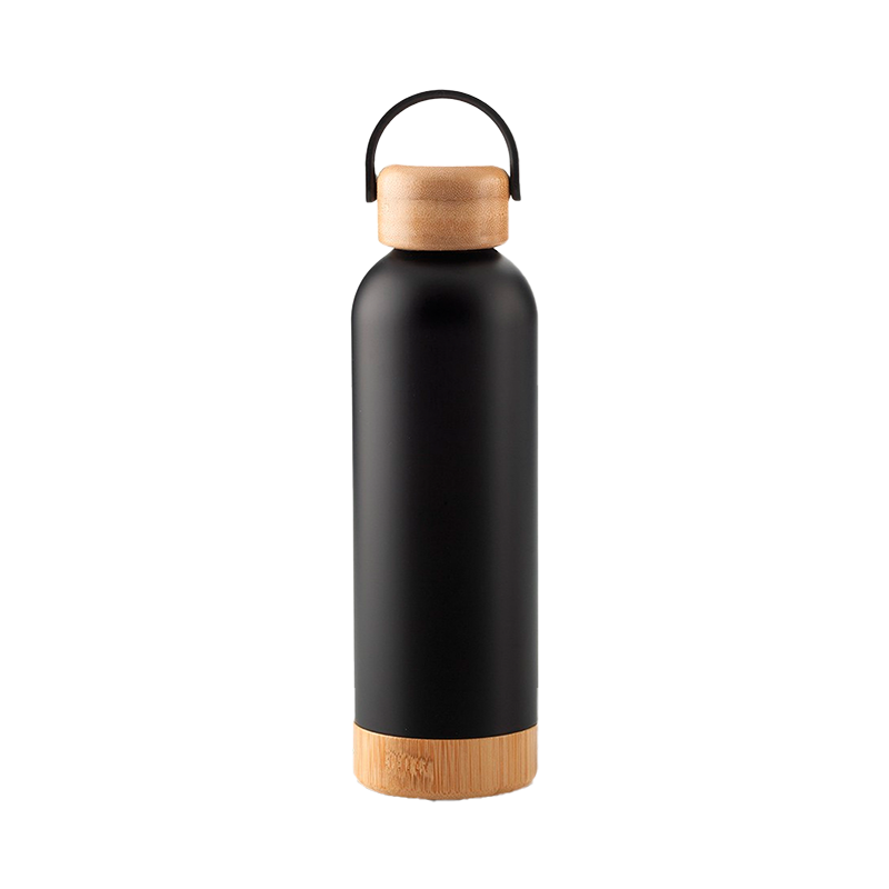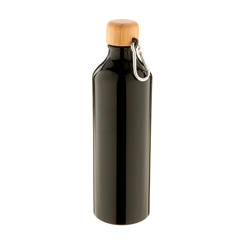 Botella de aluminio con tapa de bambú y polea 750 ml.