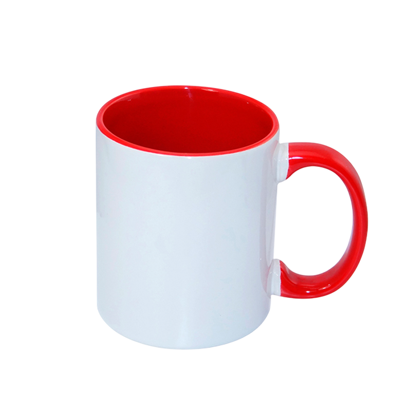 Taza de ceramica blanca con color en el interior y oreja, para sublimar 11 oz.