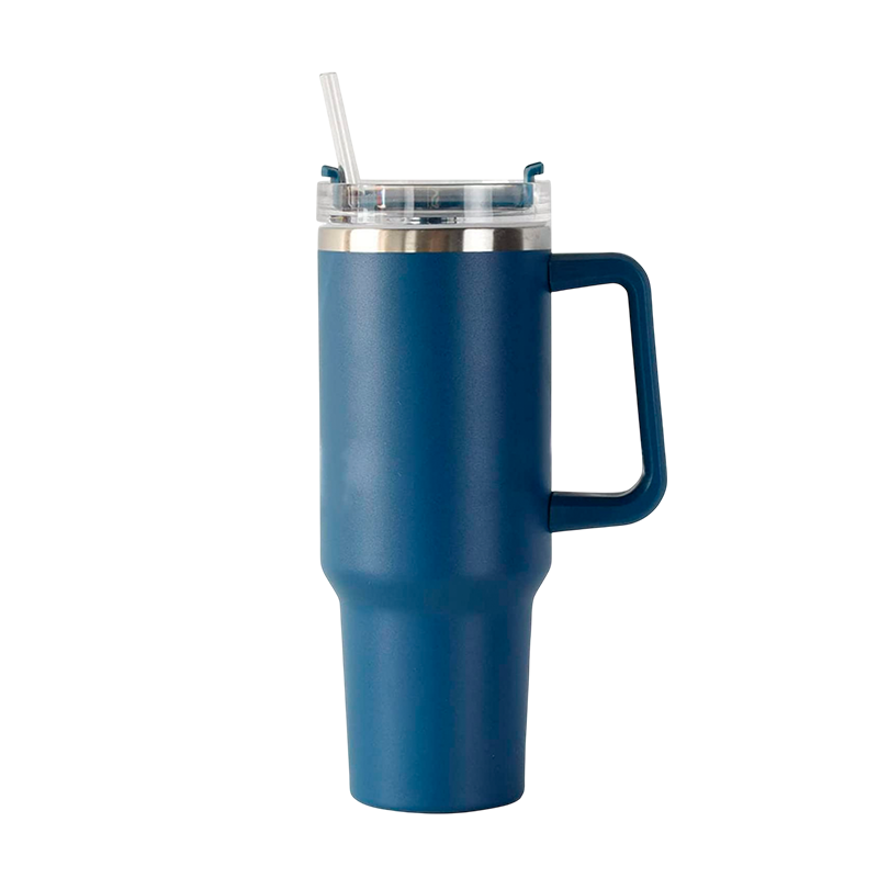 Taza doble de acero inoxidable con pajilla plástica 40 onz.