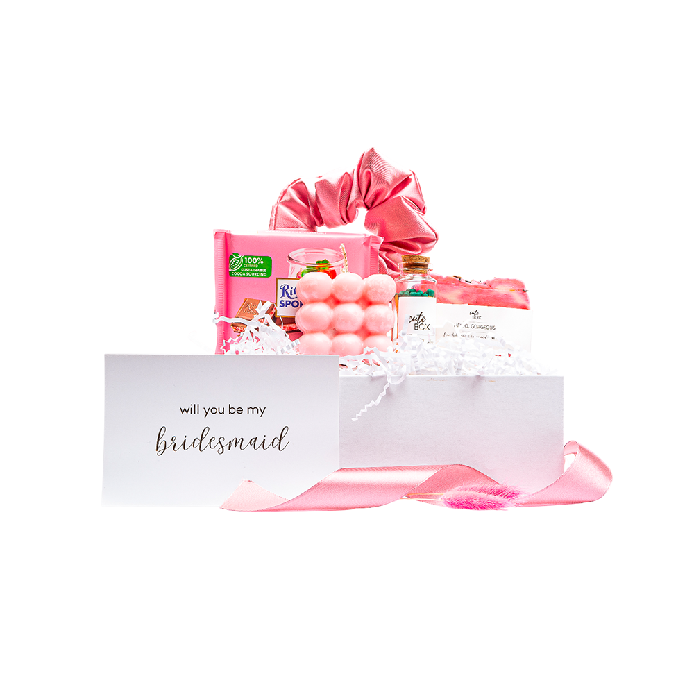 Empacado en caja cuadrada premium color blanco con cierre magnético mediana. Papel de relleno, listón, tarjetas personalizables y flor natural seca.