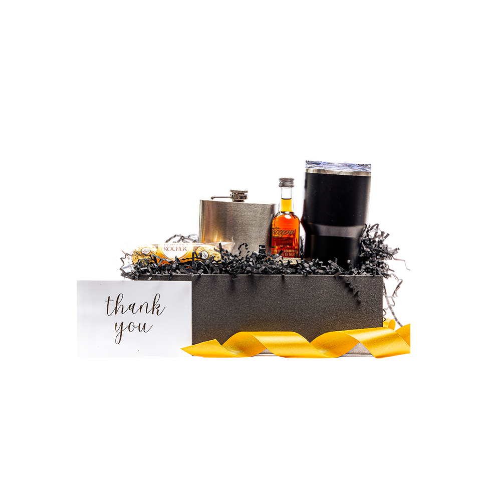 Empacado en caja premium con cierre magnético color negro mate mediana. Papel de relleno, listón, tarjetas personalizables y flor natural seca.
