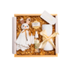 Al agregar tu regalo, puedes seleccionar el color del listón de tela satinada, la flor natural preservada que más te guste, el diseño de la tarjeta con acabado soft touch y detalles en foil dorado, y además incluir un mensaje escrito a mano. Cada elección hace tu obsequio aún más personal y especial.