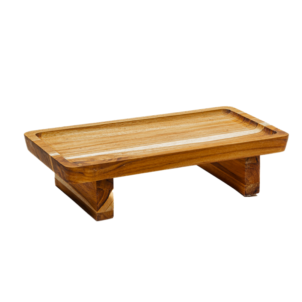 Bandeja alta de madera tipo teca 14.5×26.5×6.5 cm.