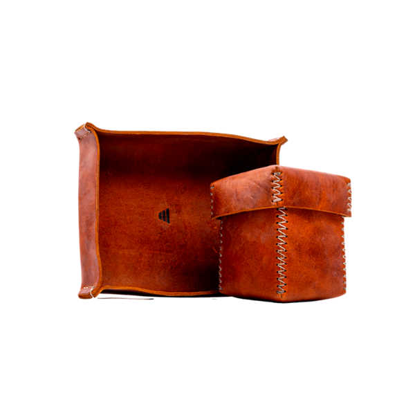 Bandeja de cuero mediana con costura a mano 22 x 17 x 4 cm.