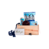 Empacado en caja de madera con tapa deslizable pequeña. Papel de relleno, listón, tarjetas personalizables y flor natural seca.