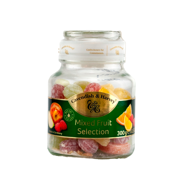 Bote de vidrio de caramelos sabor a frutas mixtas Cavendish & Harvey 300g.