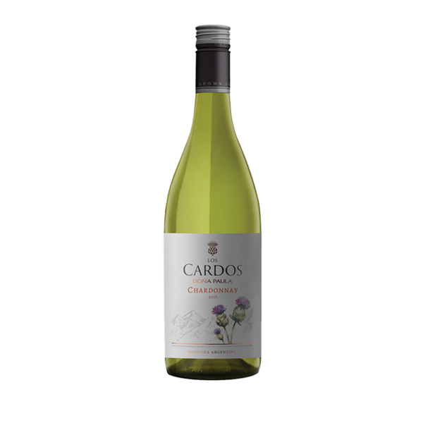 Botella de vino blanco Los Cardos Chardonnay 2022 750 ml.