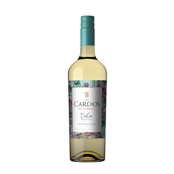 Botella de vino blanco Los Cardos Dulce Sauvignon Blanc 2023 750ml.