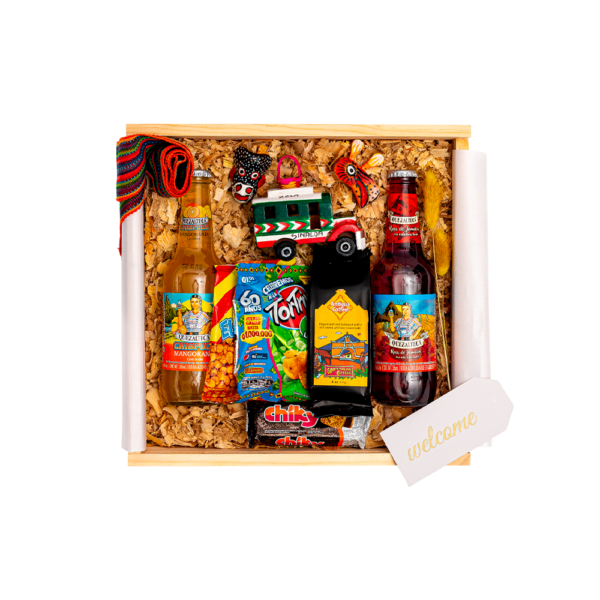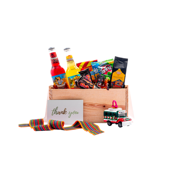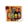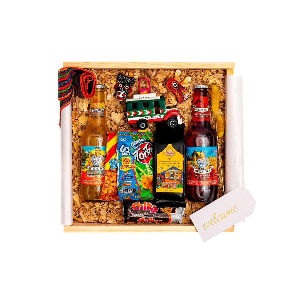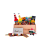 Empacado en caja de madera con tapa deslizable grande. Papel de relleno, listón, tarjetas personalizables y flor natural seca.