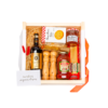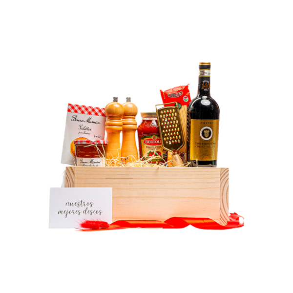 Empacado en caja de madera con tapa deslizable grande. Papel de relleno, listón, tarjetas personalizables y flor natural seca.