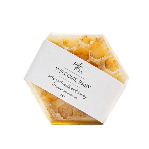 Jabón en barra humectante artesanal de avena, leche de cabra y miel en forma hexagonal 3oz.