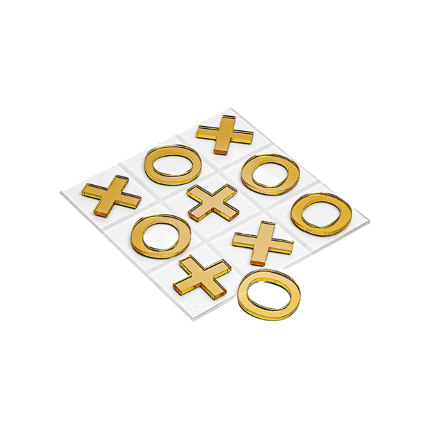 Juego de totito, elaborado en acrilico transparente y dorado 15×15 cm.