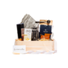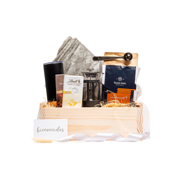 Empacado en caja de madera con tapa deslizable pequeña. Papel de relleno, listón, tarjetas personalizables y flor natural seca.