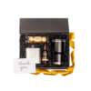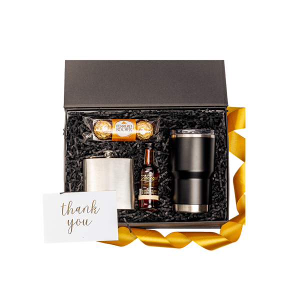 Empacado en caja premium con cierre magnético color negro mate mediana. Papel de relleno, listón, tarjetas personalizables y flor natural seca.