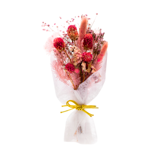Está compuesto por una selección de flores naturales en tonos rosados, ideal para regalar o decorar cualquier espacio con un toque de elegancia y frescura.