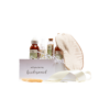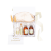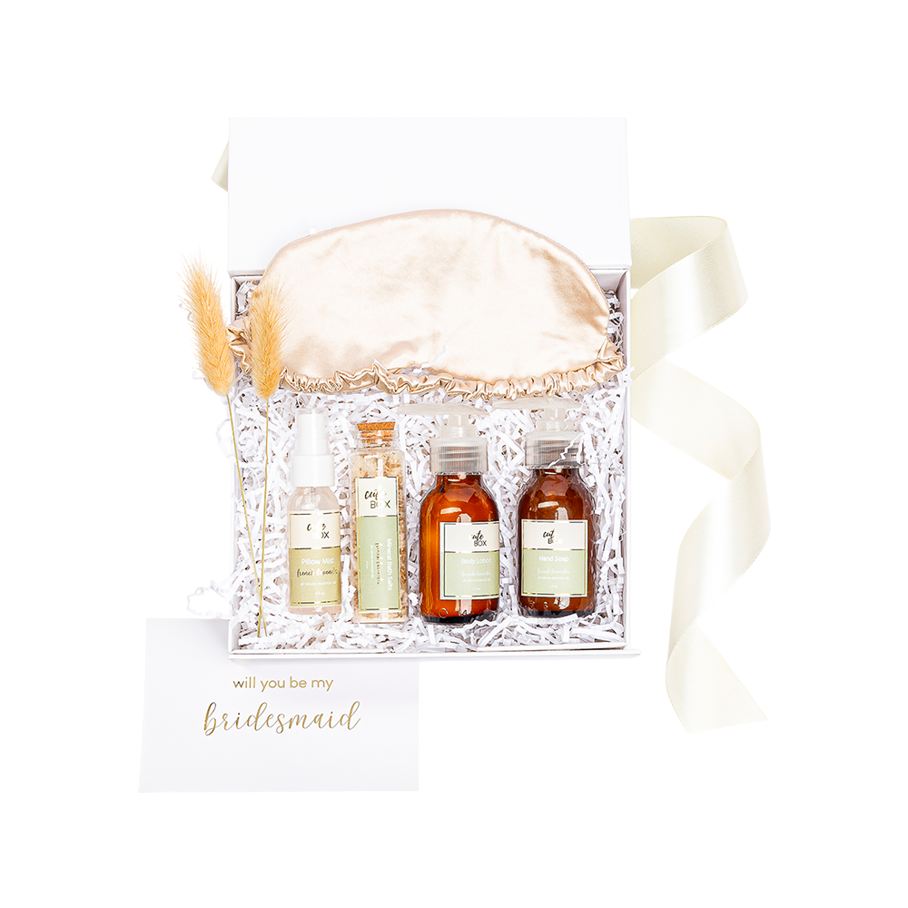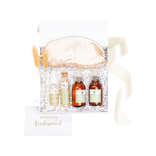 Empacado en caja rectangular premium color blanco con cierre magnético pequeña. Papel de relleno, listón, tarjetas personalizables y flor natural seca.