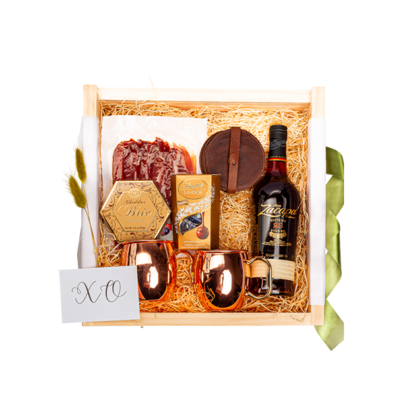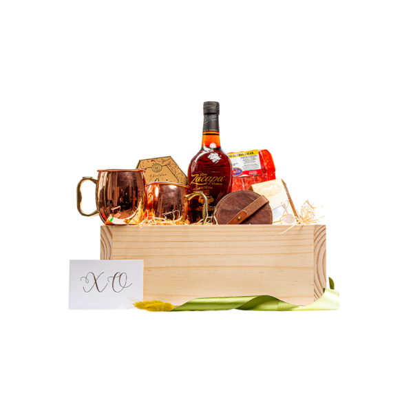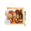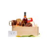 Empacado en caja de madera con tapa deslizable grande. Papel de relleno, listón, tarjetas personalizables y flor natural seca.