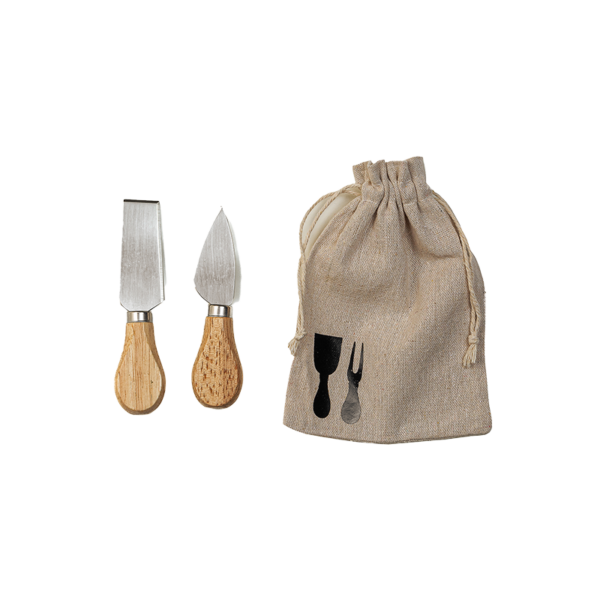 Set de 2 cuchillos para quesos, con bolsa de manta.