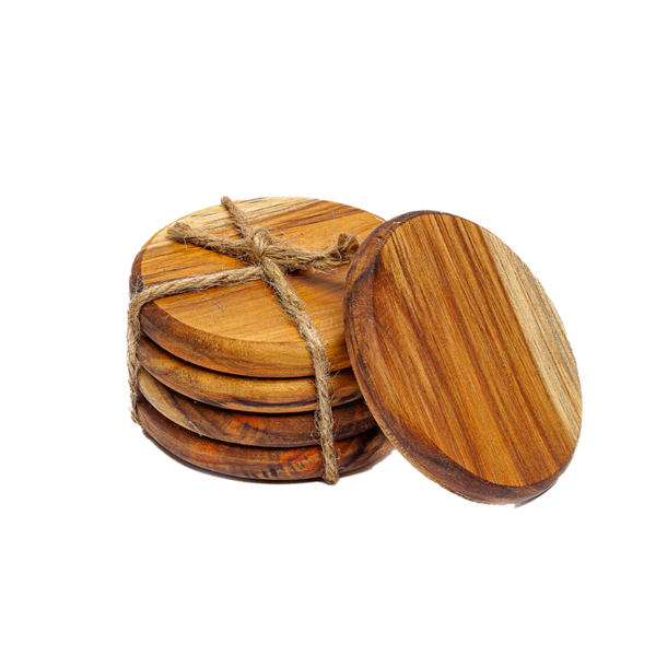 Set de 4 posa vasos redondos elaborados de madera teca.