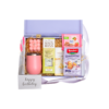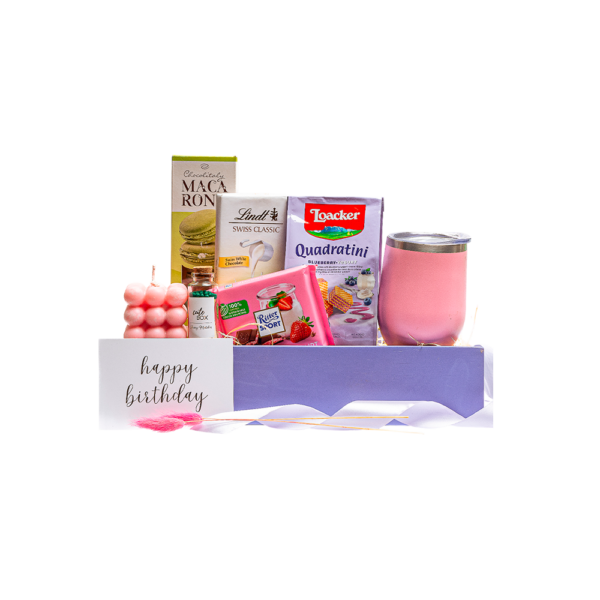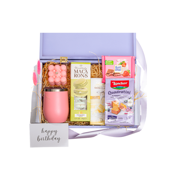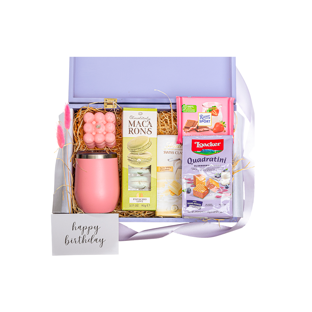 Empacado en caja cuadrada premium color blanco con cierre magnético mediana. Papel de relleno, listón, tarjetas personalizables y flor natural seca.