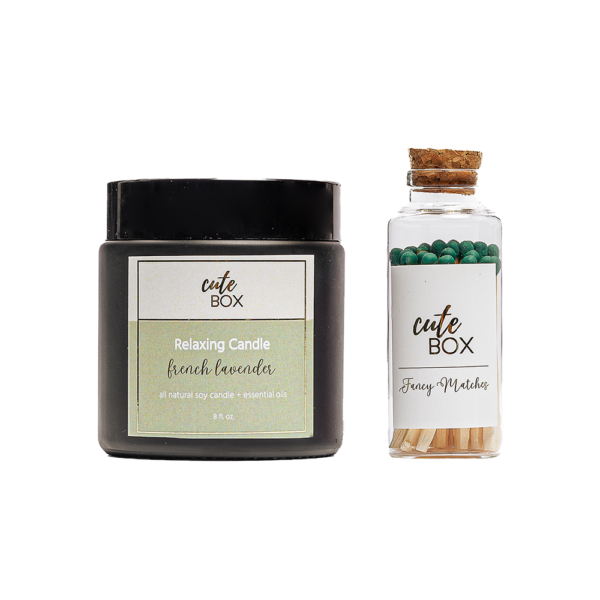 Vela relajante hecha con cera de soya y aroma French Lavander en envase de vidrio color ámbar con tapa plastica negra 8 oz.